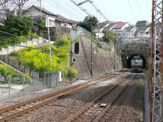 ・菜の花・桜が満開の山手を通過する27号機。(Photo:快速可憐)