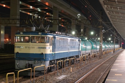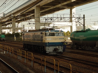・EF65-1001(新)、川崎車を出たタキ13車を牽引。